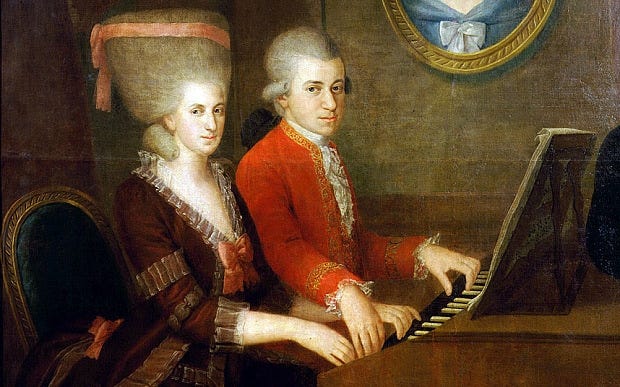 Compare that to her little brother Wolfgang. Immersed in teaching from the time he could barely talk, watching his older sister’s exceptional talent.
